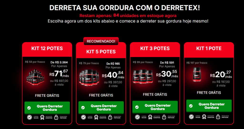 Derretex nas Últimas unidades restantes com kits de até 07% desconto! Faça o pedido da sua unidade hoje com menor preço e garanta a promoção.